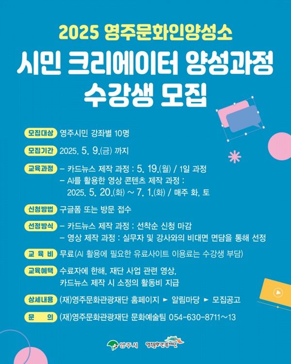 2025 영주문화인양성소 시민 크리에이터 양성과정 수강생 모집
