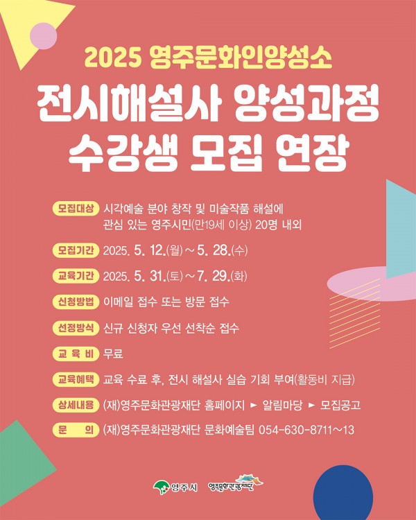 2025 영주문화인양성소 전시 해설사 양성과정 모집 연장 공고